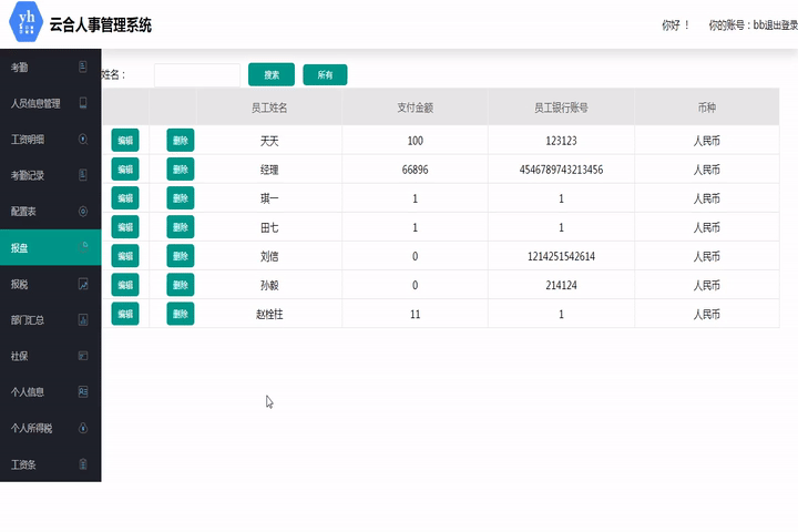 此模塊是工資明細的細分,從工資明細模塊中獲取數據,方便修改每個員工的實發工資金額。可根據姓名查詢。