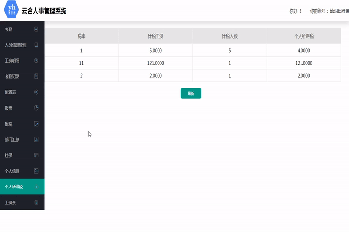 此模塊統計此系統下所有員工的個人所得稅,按稅率匯總。