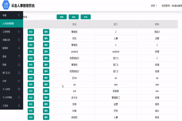 此模塊用于查看此系統下所有員工的個人信息,可以根據姓名查詢。